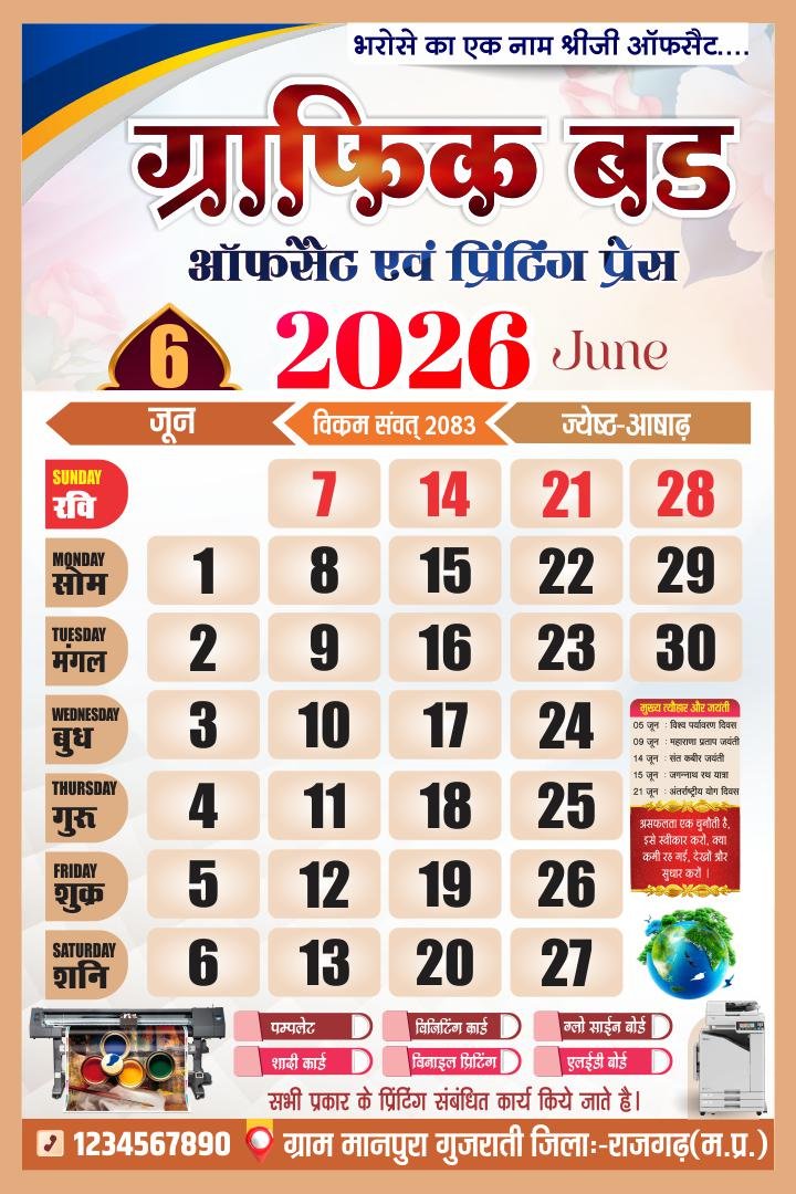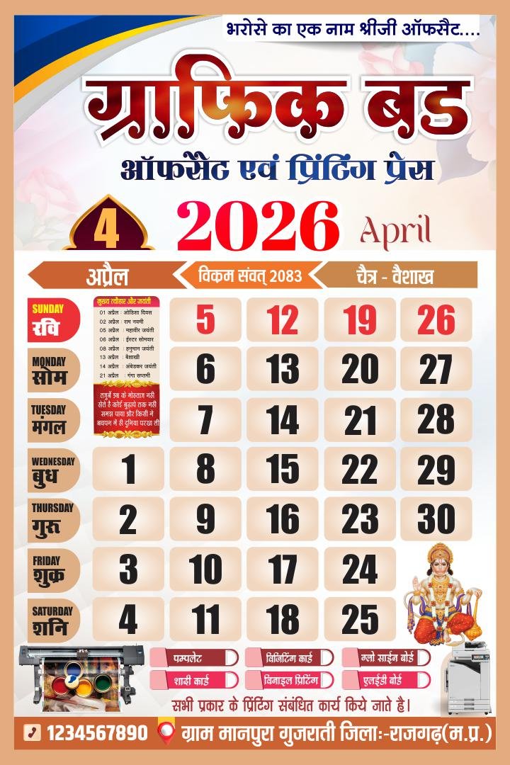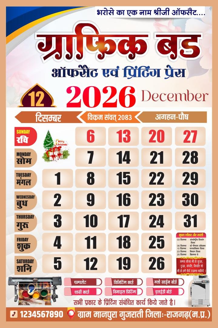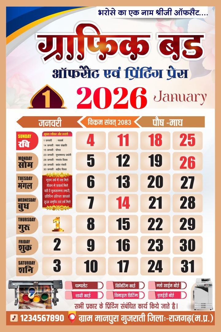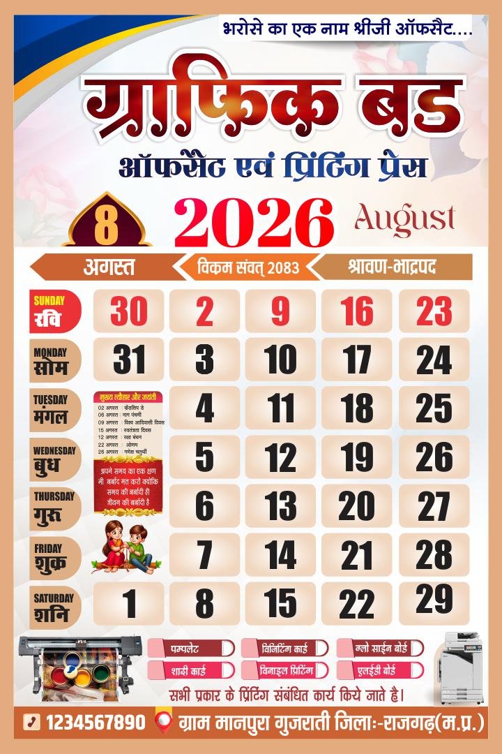 🗳️ 2026 Hindi Calendar CDR File – 12 Month Editable Design (12 Pages)