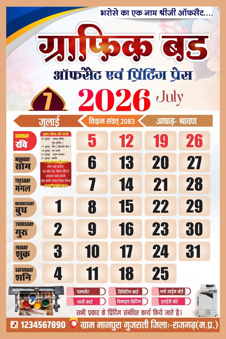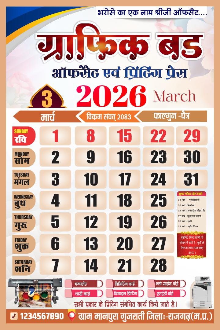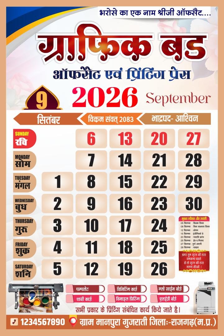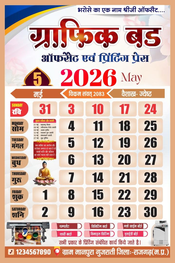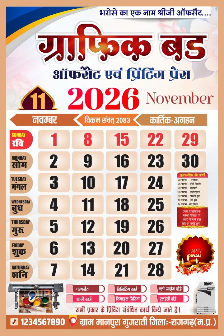 🗳️ 2026 Hindi Calendar CDR File – 12 Month Editable Design (12 Pages)