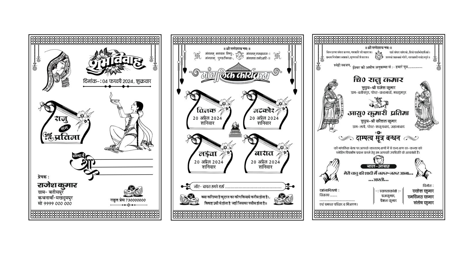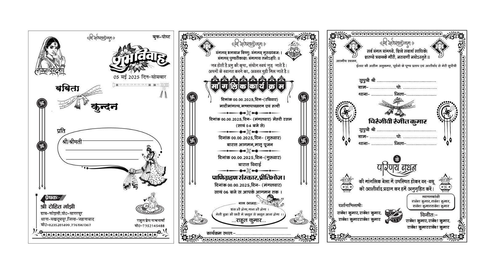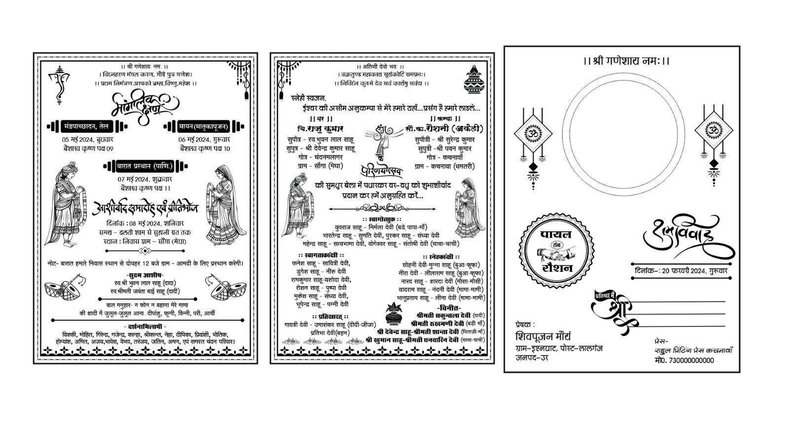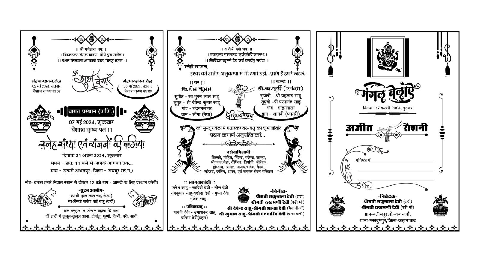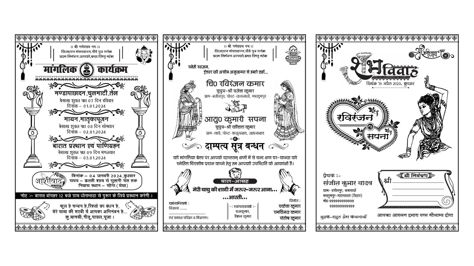58 Hindu Wedding Card Package,Car Poster,Amantran,Shok Sandesh,CDR With Font 12 to All Version