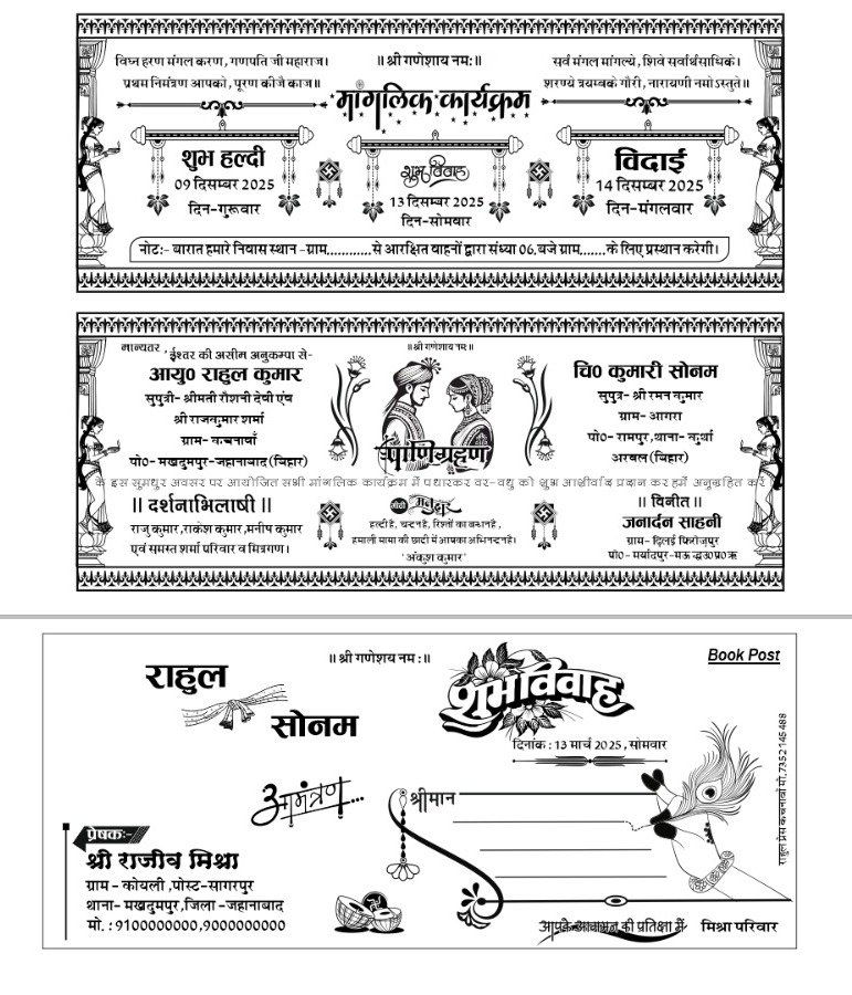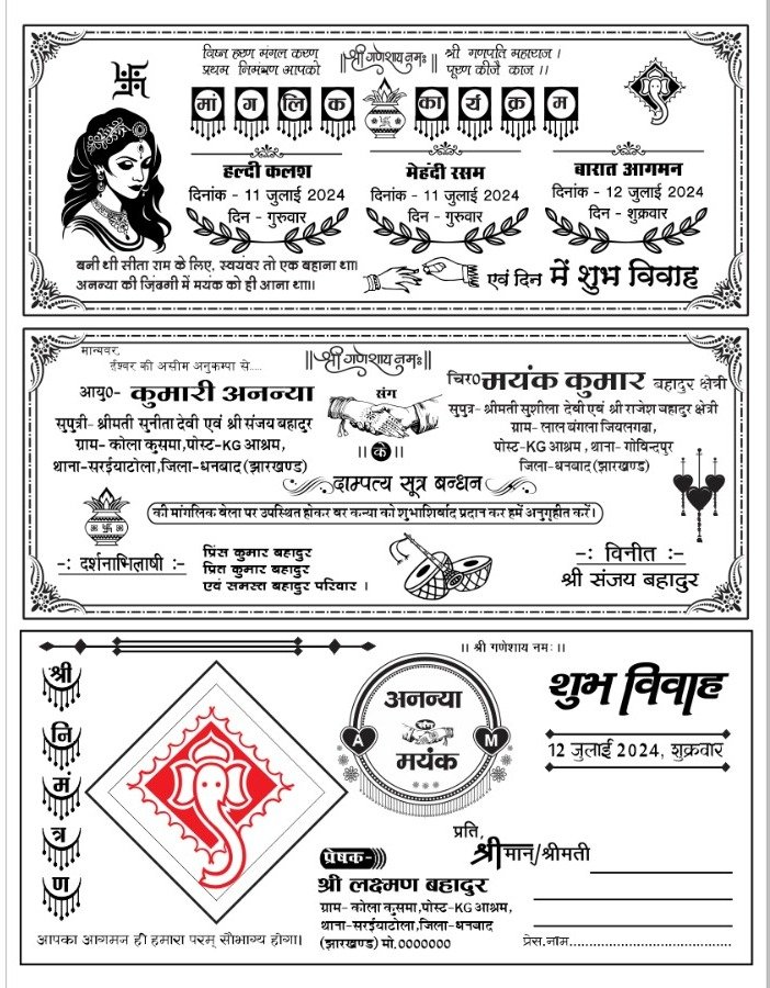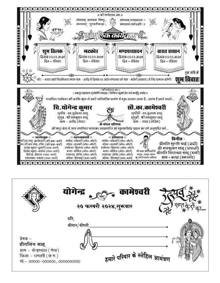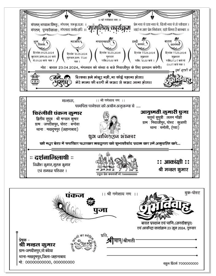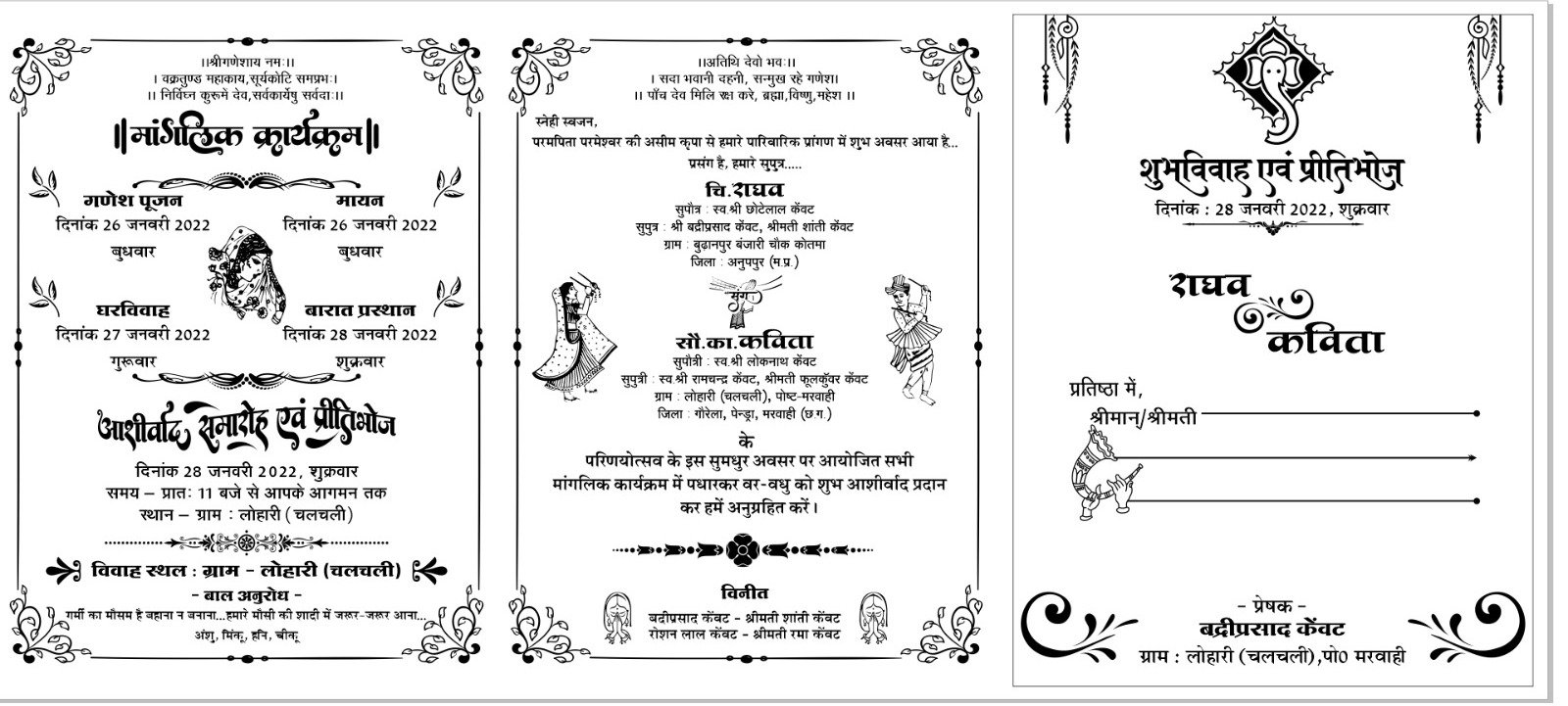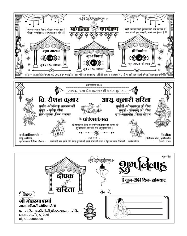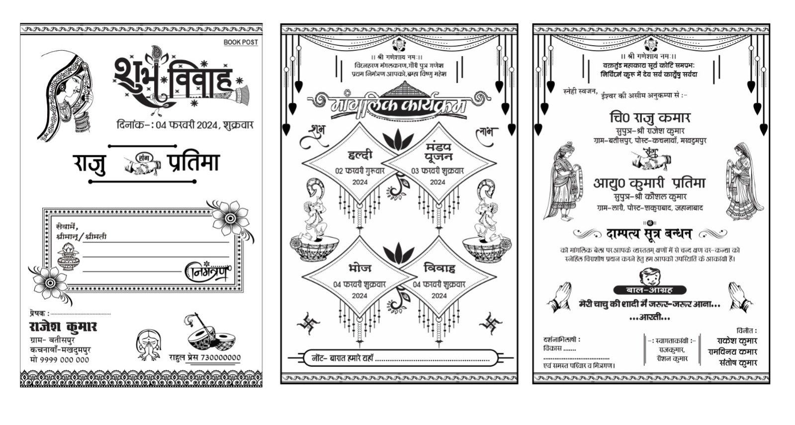 58 Hindu Wedding Card Package,Car Poster,Amantran,Shok Sandesh,CDR With Font 12 to All Version