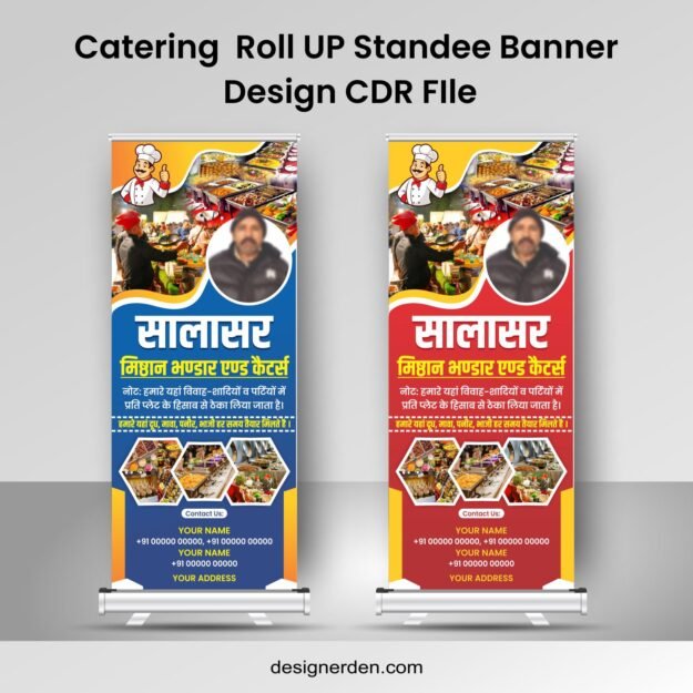 Catering Roll UP Standee Banner Design CDR File. Misthan Bhandar Banner design. Sweet shop standee banner. CDR file Version X3, X7 ensuring compatibility till latest version.