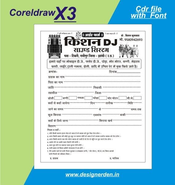 A cashmemo or bill book for DJ soun System is very important as all amount are not paid once. Some of the amount are dues. This can be better managed by a bill book or invoice book. We have created a bill book for DJ and Sound. Our file will open in corelDRAW software only.