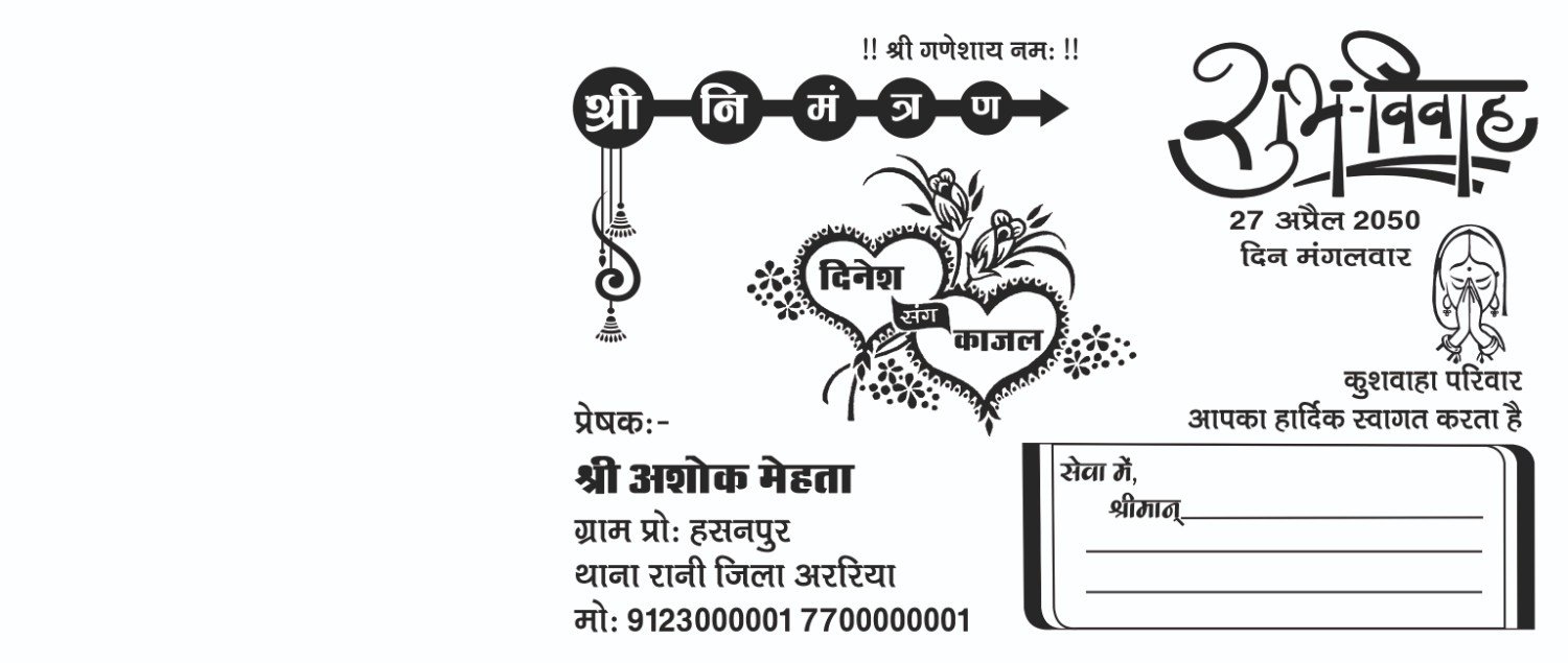 Fancy Hindu wedding card front and back printing black and white matter design cdr file