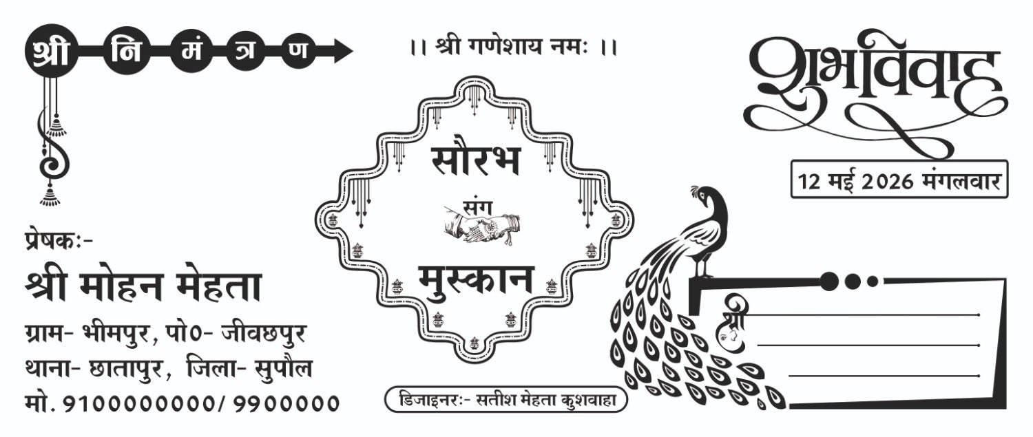 Best Sadi card matter design for hindu marriage. Hindi chadi ke lite matter design hindi me. CDR File.