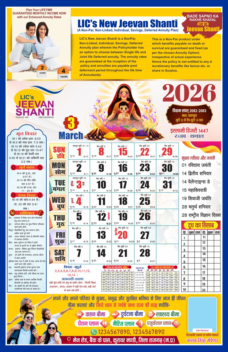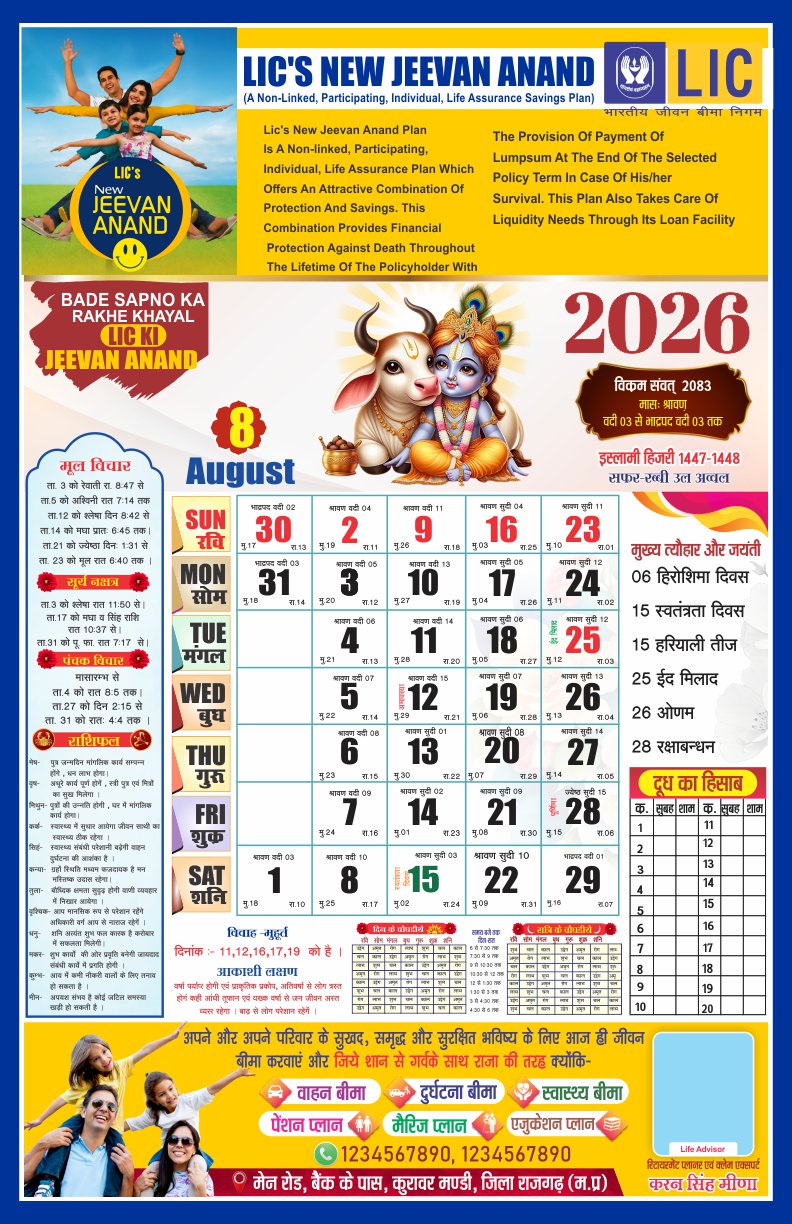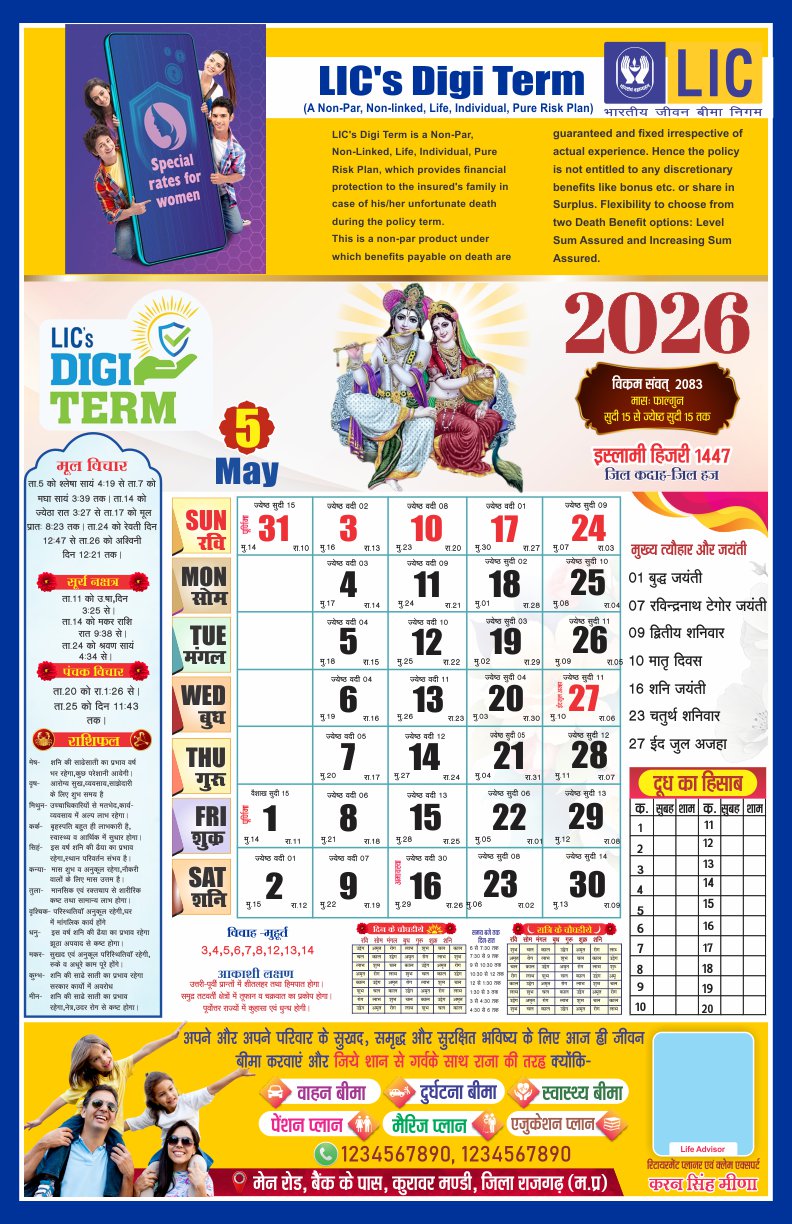 LIC 2026 Premium Hindi Panchang Calendar