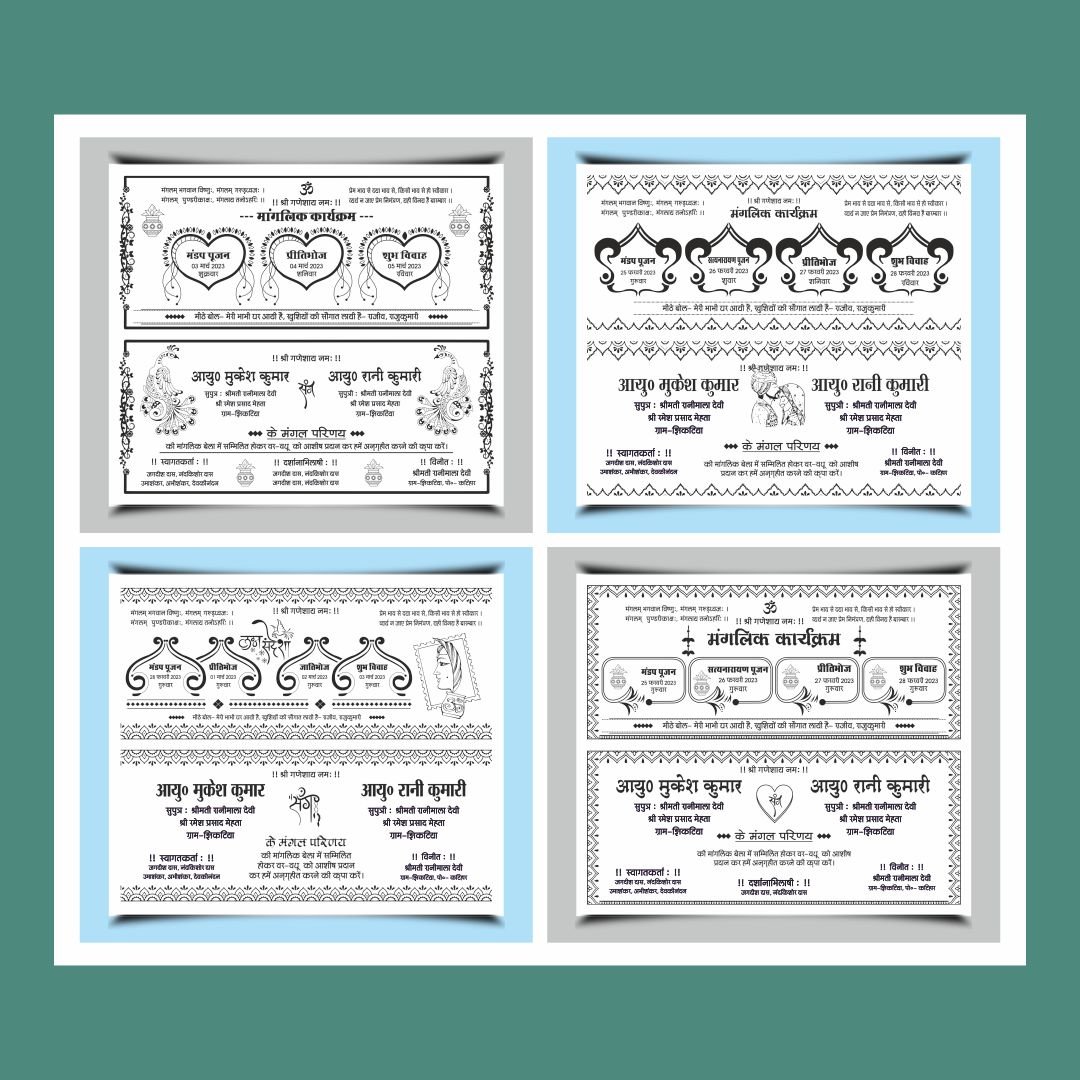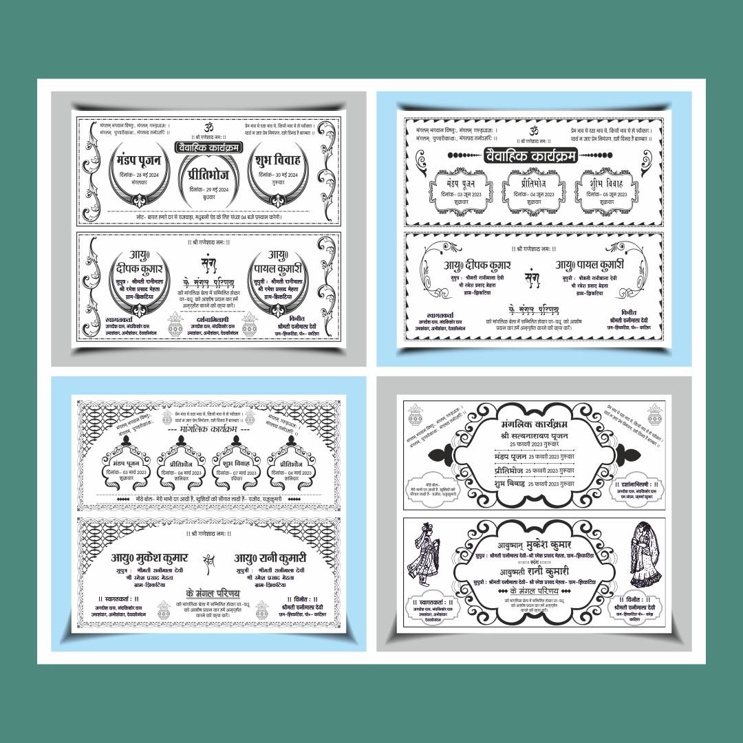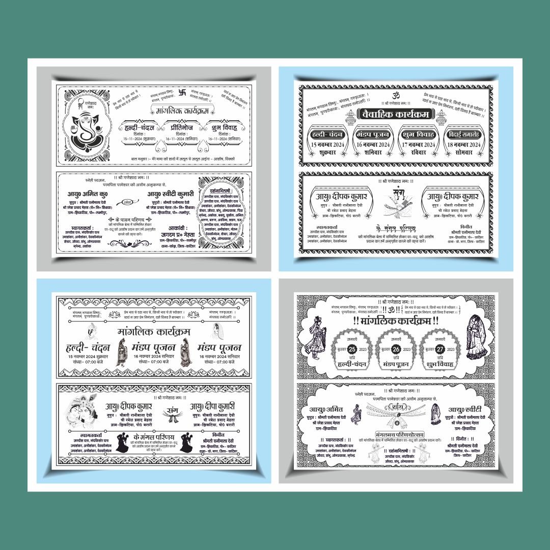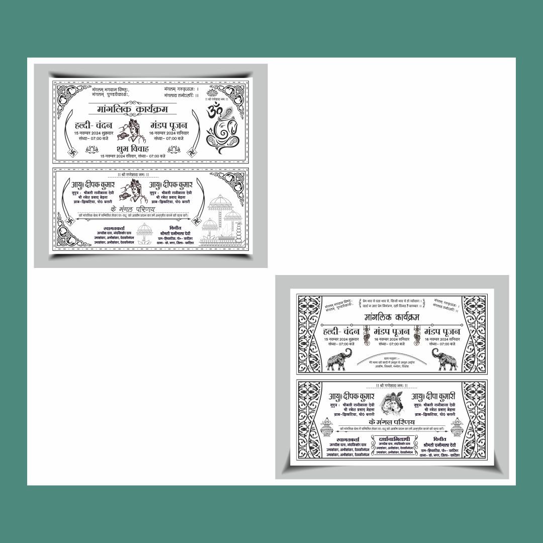 Yah ek Packages of hindu Wedding Card Matter Design ka CDR File hai. Iss file mein hum aapko de rhe hai total 50 hindu matter card designs. Yah single color wedding matter card designs hai jo offset aur screen printing ke liye suitable hai. Is package mein aapko alag alag design aur formats ke editable CDR files milte hain jise aap CorelDraw mein asani se customize kar sakte hai. Yah package printing presses walo ke liye best choice hai, aap clients ke multiple orders ke liye alag alag styles mein cards design kar sakte hain. Black and white color mein yah design ek effective aur attractive look deta hai. Iss wedding card package mein aap alag alag tarah ke design milta hai.