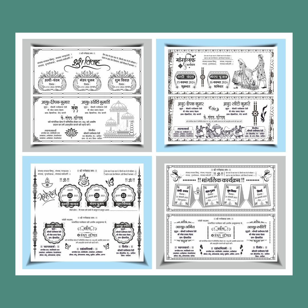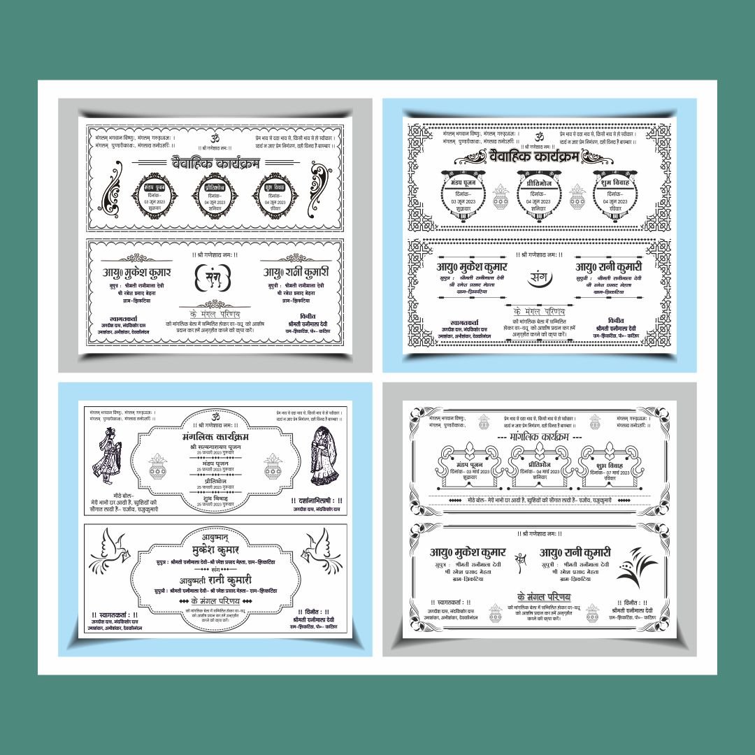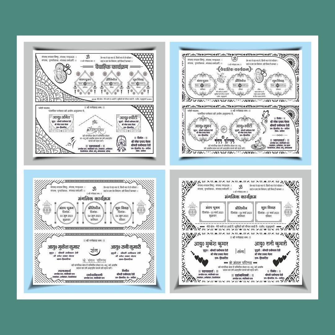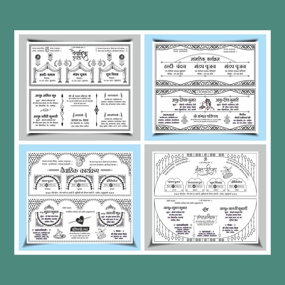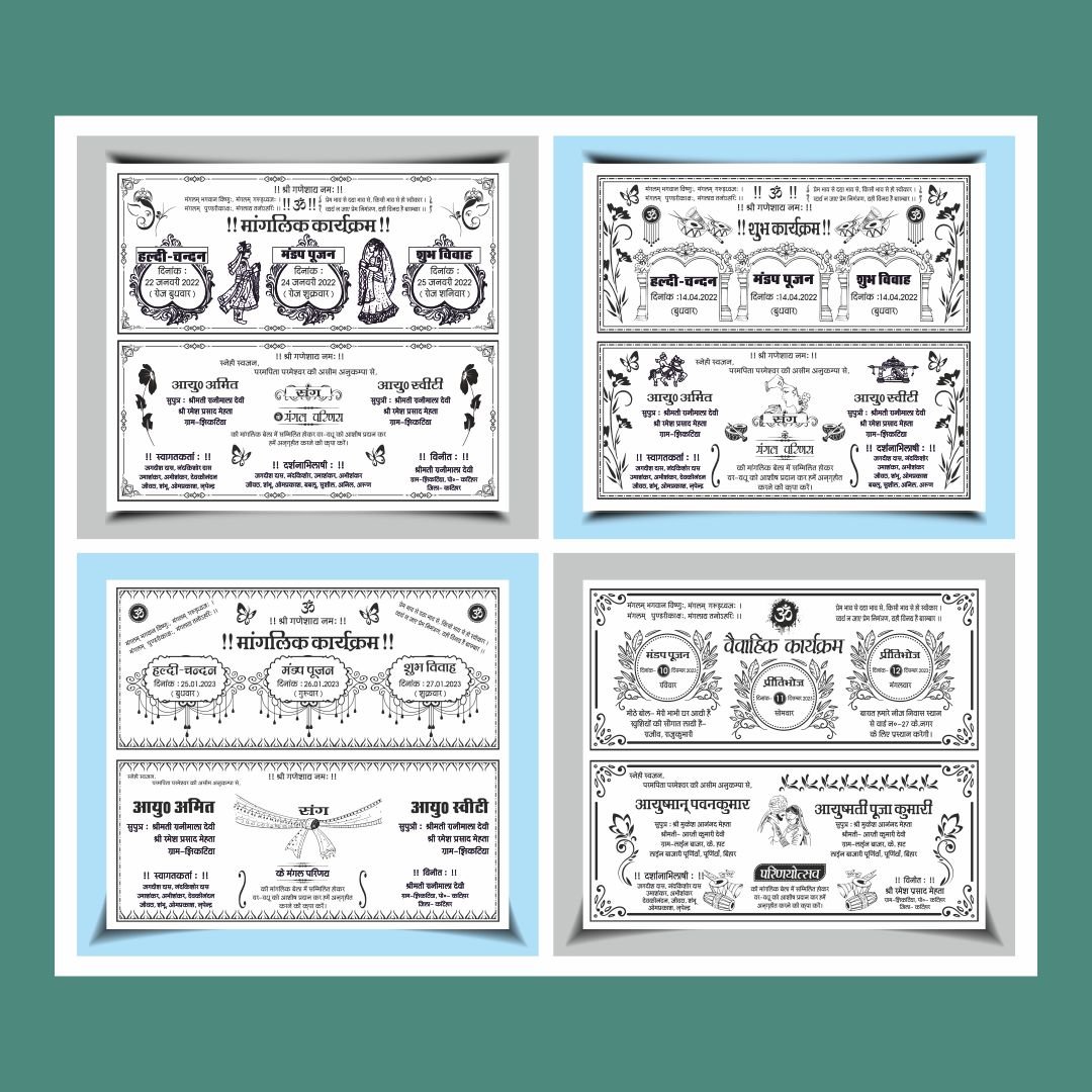 Yah ek Packages of hindu Wedding Card Matter Design ka CDR File hai. Iss file mein hum aapko de rhe hai total 50 hindu matter card designs. Yah single color wedding matter card designs hai jo offset aur screen printing ke liye suitable hai. Is package mein aapko alag alag design aur formats ke editable CDR files milte hain jise aap CorelDraw mein asani se customize kar sakte hai. Yah package printing presses walo ke liye best choice hai, aap clients ke multiple orders ke liye alag alag styles mein cards design kar sakte hain. Black and white color mein yah design ek effective aur attractive look deta hai. Iss wedding card package mein aap alag alag tarah ke design milta hai.