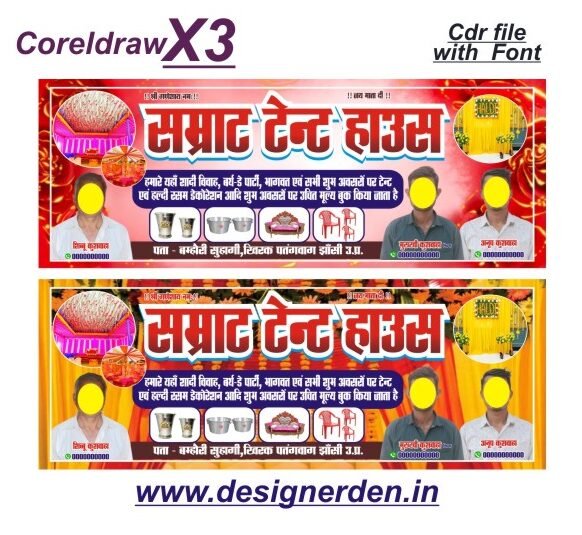 Tent House Banner Design CDR file – Flex Design for Tenthouse | Necessary fonts are included.